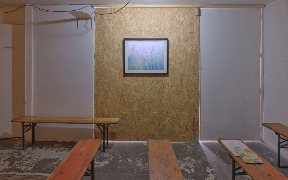 Lily presented two framed photographs, An edge is also a doorway (2024) and Hugh's flowers (2024). On opening night she did a live performance incorporating spoken text with presenting photographic slides.